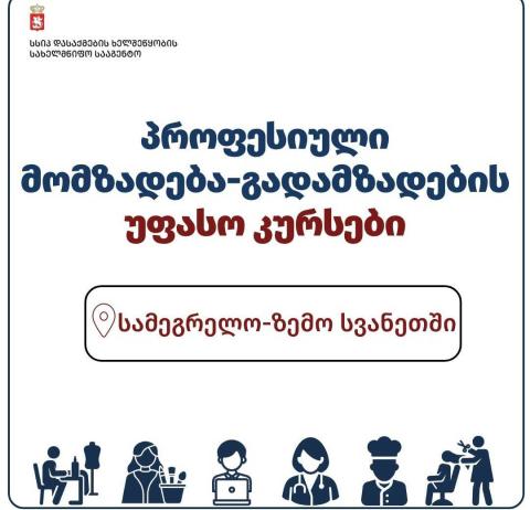 პროფესიული მომზადება- გადამზადების უფასო კურსები სამეგრელო - ზემო სვანეთში