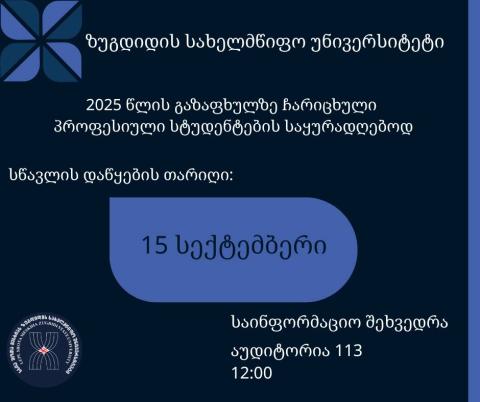 2025 წლის გაზაფხულზე ჩარიცხული პროფესიული სტუდენტების საყურადღებოდ!..