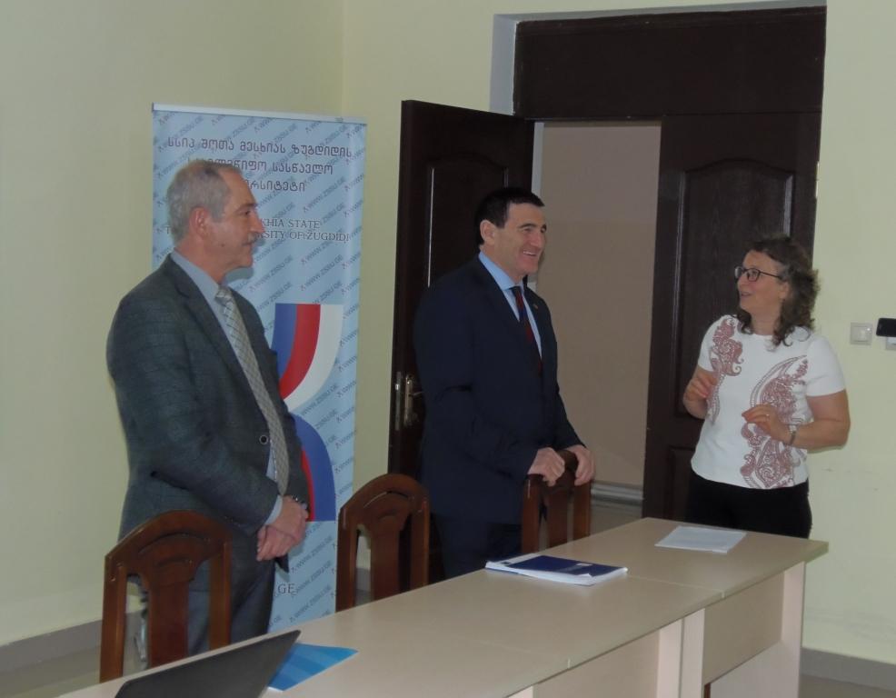 On November 20, 2018, the researchers of Levan Mikeladze Diplomatic Training and Research Institute of the Ministry of Foreign Affairs of Georgia, Nikoloz Rtveliashvili and Soso Danelia held a public lecture at Shota Meskhia State Teaching University of Zugdidi on the topic “Foreign policy of Georgia and its priorities”
