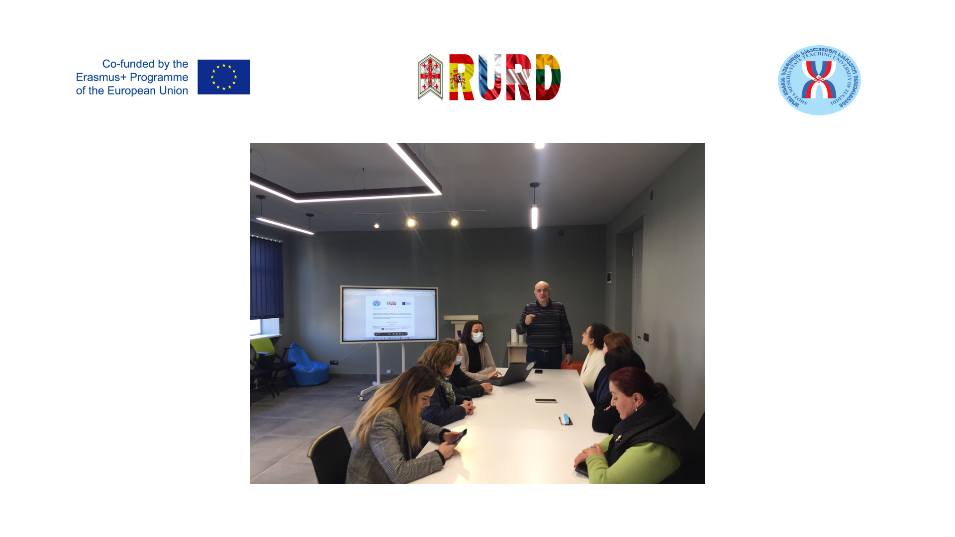 On March 23, 2022, within the framework of erasmus+ CBHE Project RURD (Role of Universities in Regional Development), Prof. Zaal Kortua and chief specialist of Quality Assurance office, Natia Tsipuria held an information meeting with the academic and administrative staff of Shota Meskhia State Teaching University of Zugdidi regarding the working meeting and training held at Vytautas Magnus University in Kaunas, Lithuania.