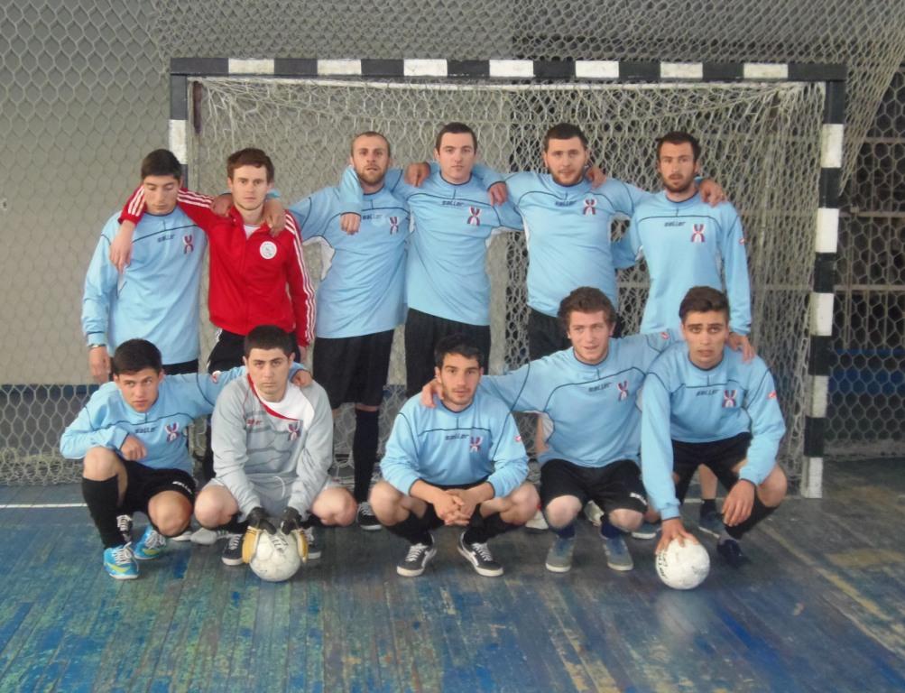 გამარჯვებული უნივერსიტეტის გუნდი ფუტსალის ტურნირზე |