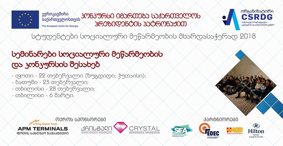 კონკურსის ფარგლებში ჩატარდება სემინარები და გაცნობითი შეხვედრები სოციალური მეწარმეობის თემაზე.