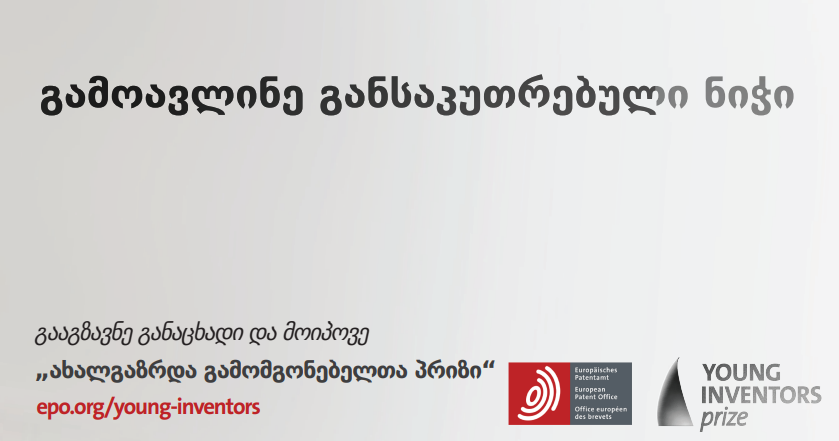 საქართველოს ინტელექტუალური საკუთრების ეროვნული ცენტრის - საქპატენტის სახელით, გვსურს გაცნობოთ, რომ ევროპის საპატენტო უწყება (EPO) ახალგაზრდა გამომგონებლებს მსოფლიოს ნებისმიერი წერტილიდან აძლევს უნიკალურ შესაძლებლობას მოიპოვოს „ახალგაზრდა გამომგონებელთა პრიზი“, რომელიც ითვალისწინებს ფულად ჯილდოს 20 000 ევროს ოდენობით. პრიზი განკუთვნილია ახალგაზრდა ინოვატორებისთვის, რომლებიც მუშაობენ ისეთი ტექნოლოგიური ინოვაციების შექმნაზე, რომელიც ხელს უწყობს გაეროს მდგრადი განვითარების მიზნების მიღწევას. „ახალგაზრდა გამომგონებელთა პრიზი“ ახალი ნომინაცია, რომელიც დაემატა EPO-ს ყოველწლიურ კონკურსს „ევროპელი გამომგონებლის ჯილდოს“ 2022 წელს და მისი მიზანია მომავალი თაობის ინოვაციური უნარების წახალისება.