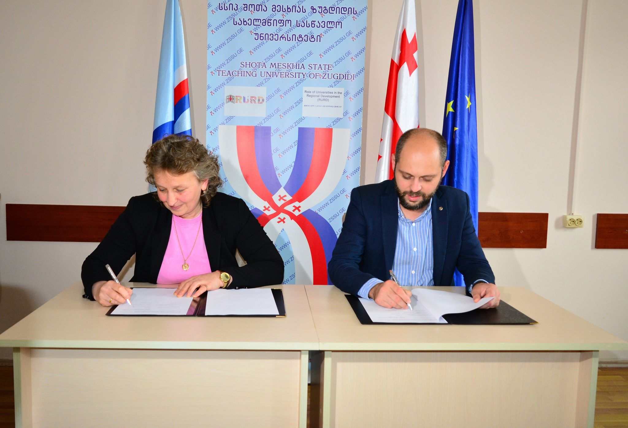 „ დღეს აქ ორ დიდ მნიშვნელოვან პროექტს მოეწერა ხელი, პირველი, ის რომ მუნიციპალიტეტის მერიასთან გაფორმდა მემორანდუმი. უნივერსიტეტს აქვს საერთაშორისო პროექტი RURD-ი, რომელიც გულისხმობს უნივრსიტეტის როლის გაძლიერაბას მუნიციპალიტეტის განვითარებაში. ამ აქტივობების გათვალისწინებით, მემორანდუმის ფარგლებში დაიგეგმება ძალიან მნიშვნელოვანი აქტივობები, სადაც უნივერსიტეტის როლი გამოჩნდება ძალიან მნიშვნელოვნად. ეს პლატფორმა, რომელსაც ქვია მრჩეველთა საბჭოს თავმჯდომარეობა, რომლის უფლებაც მიენიჭა უნივერსიტეტს და როგორც პირს- რექტორს, ამით გამოიხატა მუნიციპალიტეტის სტრატეგია, თუ რამდენად მნიშვნელოვანია მის განვითარებაში უნივერსიტეტის როლი. დღეს შედგა პირველი შეხვედრა, სადაც ჩვენ განვიხილეთ გამოკითხვის შედეგების პირველადი მონაცემები, რა პრიორიტეტები შეიძლება იყოს მუნიციპალიტეტის განვითარებისთვის მნიშვნელოვანი. პირველ შეხვედრაზევე ვთქვით, რომ შევქმნათ ძალიან დიდი მნიშვნელოვანი სტრატეგიული გეგმა ცალკეული მიმართულებებითა და დარგებით, რომელიც გამოკვეთს ცალკეული პრიორიტეტების ფარგლებში მნიშვნელოვან გზავნილებს, რაც საბოლოო ჯამში გრძელვადიანი სტრატეგიის ბოლოს დადებს რეალურ შედეგს, როგორც განვითარებულ მუნიციპალიტეტს.“- განაცხადა თეონა ხუფენიამ.