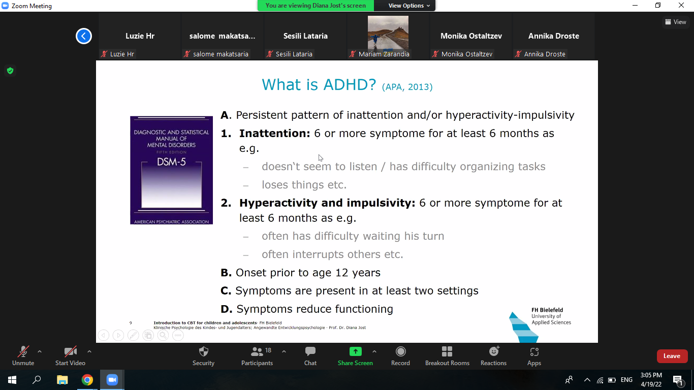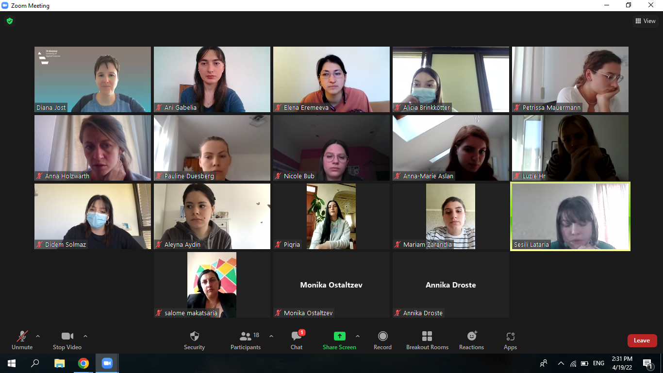 2021-2022 სასწავლო წლის გაზაფხულის სემესტრის განმავლობაში შოთა მესხიას ზუგდიდის სახელმწიფო უნივერსიტეტი აგრძელებს ნაყოფიერ თანამშრომლობას გერმანიის ბილფილდის უნივერსიტეტთან. უნივერსიტეტის სხვადასხვა საგანმანათლებლო პროგრამის სტუდენტები ბილფილდის უნივერსიტეტის სოციალური მუშაკის საგანმანათლებლო პროგრამის სტუდენტებთან ერთად მონაწილეობას იღებენ საერთო სასწავლო კურსში სახელწოდებით „ კოგნიტური ქცევითი თერაპია“. კურსს ახორციელებს გერმანელი პროფესორი დაიანა იოსთი.