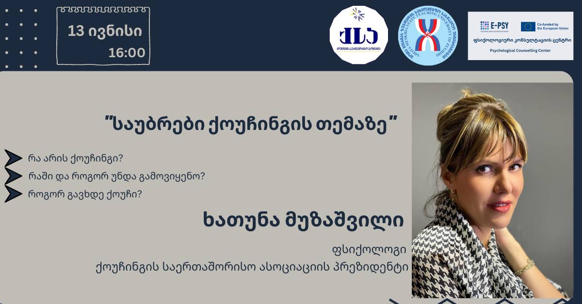 13 ივნისი, შოთა მესხიას ზუგდიდის სახელმწიფო სასწავლო უნივერსიტეტში ქოუჩინგის საერთაშორისო ასოციაციის პრეზიდენტის, ფსიქოლოგ ხათუნა მუზაშვილის ტრენინგი სტუდენტებთან, ,,საუბრები ქოუჩინგის თემაზე ".
