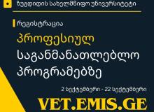 პროფესიულ საგანმანათლებლო პროგრამებზე #რეგისტრაცია დაიწყება 2 სექტემბერს და დასრულდება 22 სექტემბერს. რეგისტრაციის გასავლელად, გთხოვთ ეწვიოთ საიტს: vet.emis.ge