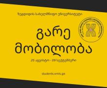 გარე მობილობის მსურველ პირთა საყურადღებოდ! მობილობის მსურველ პირთა ელექტრონულ პორტალზე https://students.emis.ge/ რეგისტრაციის ვადა განისაზღვრა: 25 აგვისტო - 9 სექტემბერი.