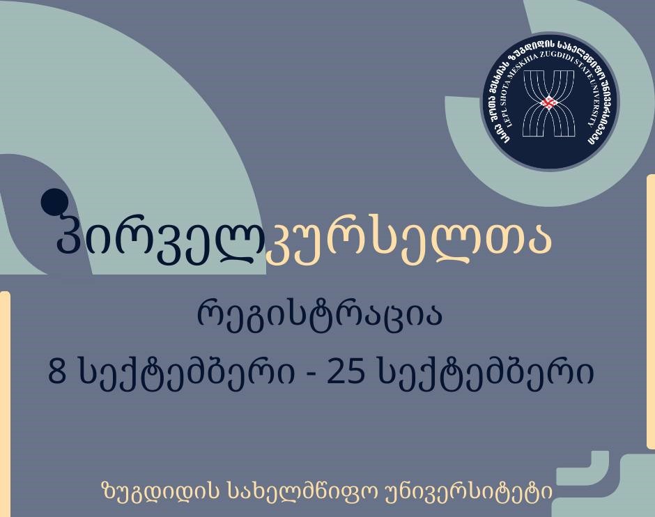 პირველკურსელთა რეგისტრაცია. დამატებითი ინფორმაციისთვის ეწვიეთ უნივერსიტეტის ვებსაიტს: https://zssu.ge/zssu2/node/1409