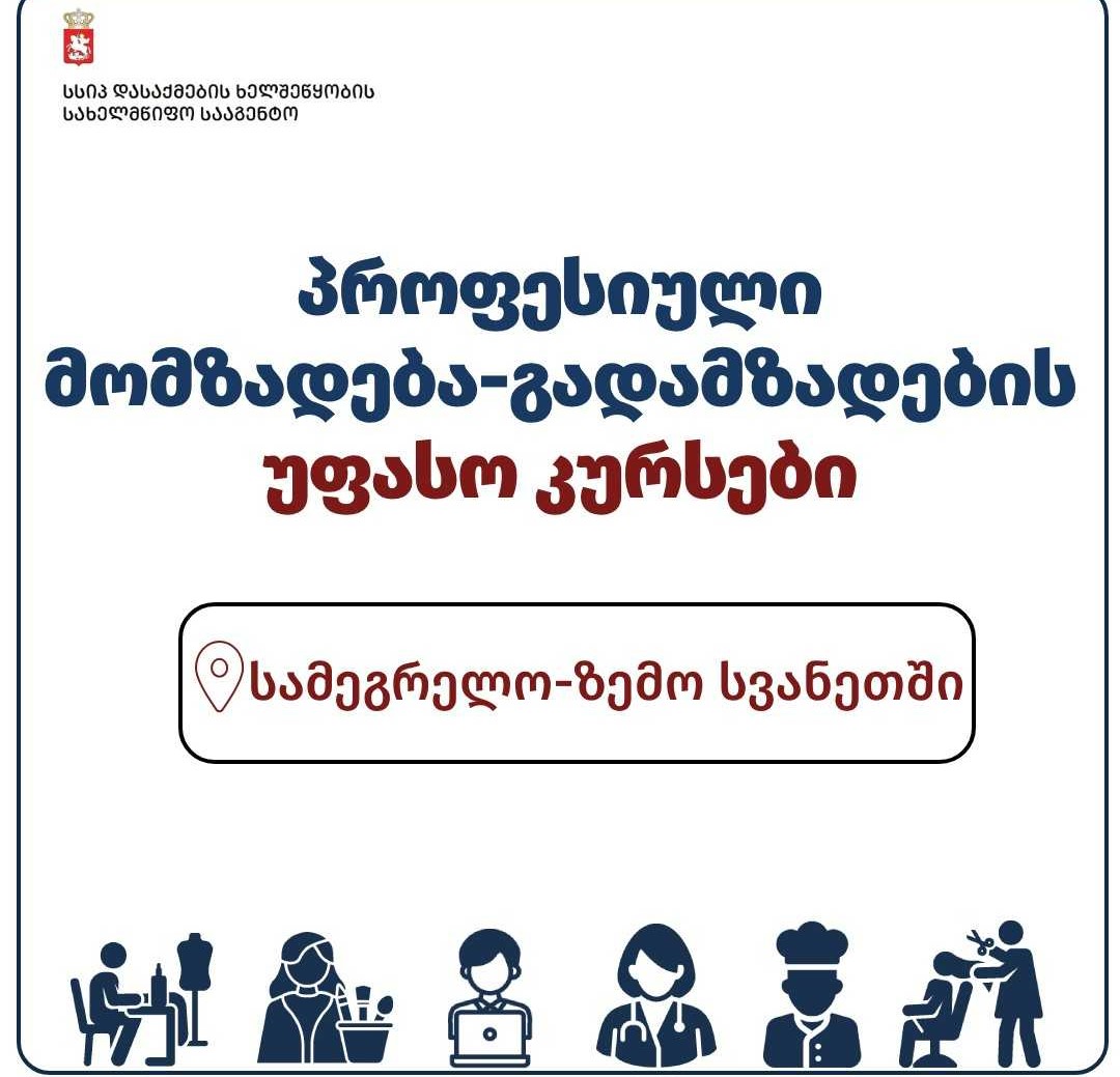 პროფესიული მომზადება- გადამზადების უფასო კურსები სამეგრელო - ზემო სვანეთში