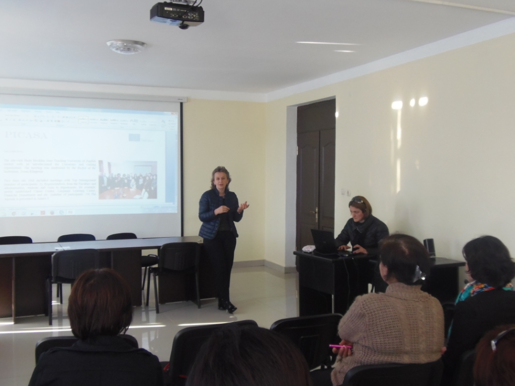 მიმდინარე წლის 6 ნოემბერს შოთა მესხიას ზუგდიდის სახელმწიფო სასწავლო უნივერსიტეტის რექტორი თეონა ხუფენია და ამავე უნივერსიტეტის ხარისხის უზრუნველყოფის სამსახურის ხელმძღვანელი ბელა მოსია უნივერსიტეტში მიმდინარე საერთაშორისო პროექტის Promoting Internationalization of HEIs in Eastern Neighborhood Countries (PICASA) ფარგლებში უნივერსიტეტის ადმინისტრაციასა და აკადემიურ პერსონალს შეხვდა. ტრენინგ-სემინარი მოიცავდა ინფორმაციას, პროექტის მეთოდოლოგიისა და სასწავლო უნივერსიტეტის შესაძლებლობის გაძლიერების საქმეში ინტერნაციონალიზაციის განსაკუთრებული მნიშვნელობის შესახებ. დამსწრეებს გააცნეს სამომავლო გეგმები საგანმანათლებლო პროგრამის ინტერნაციონალიზების თვალსაზრისით გასაწევი შემდგომი საქმიანობების შესახებ.